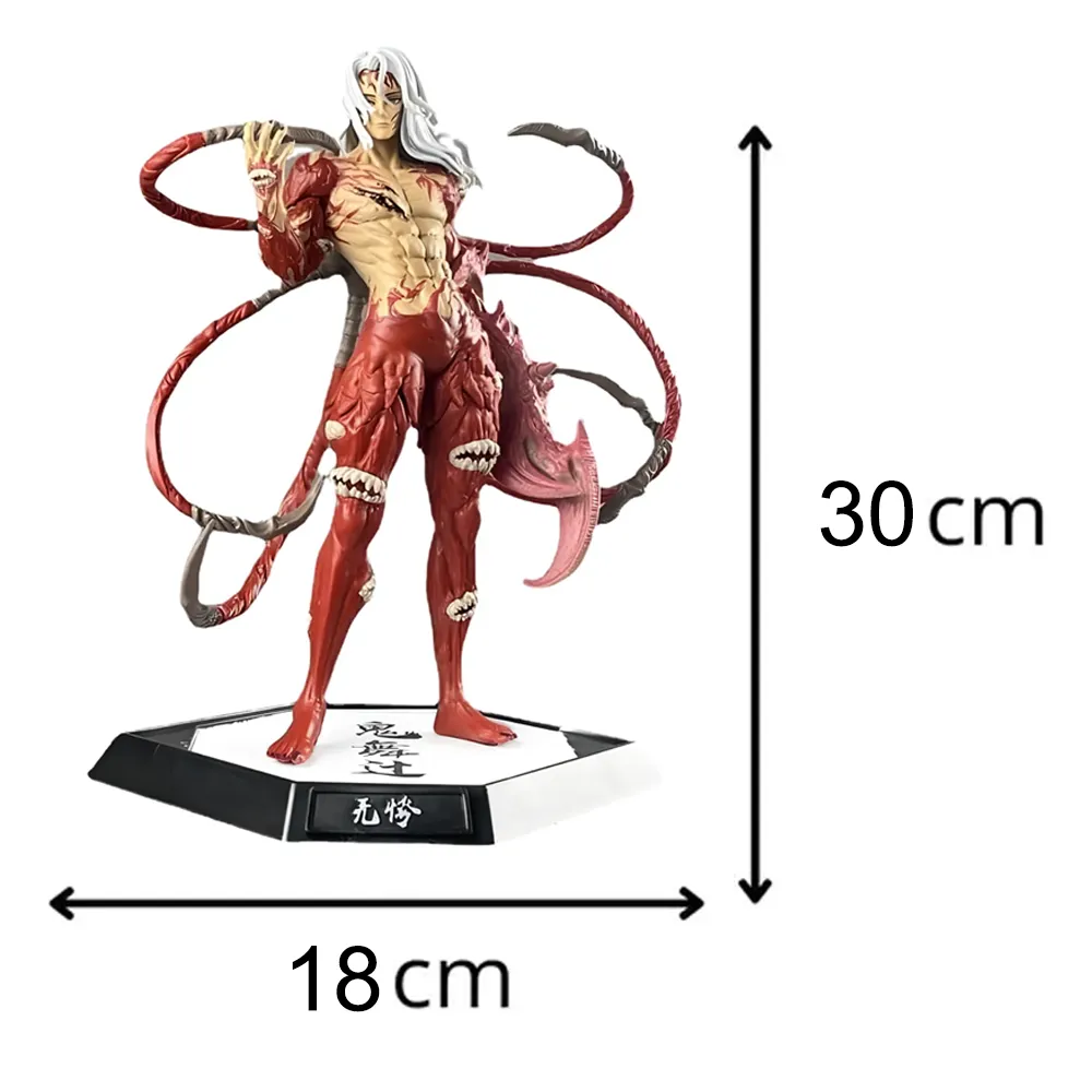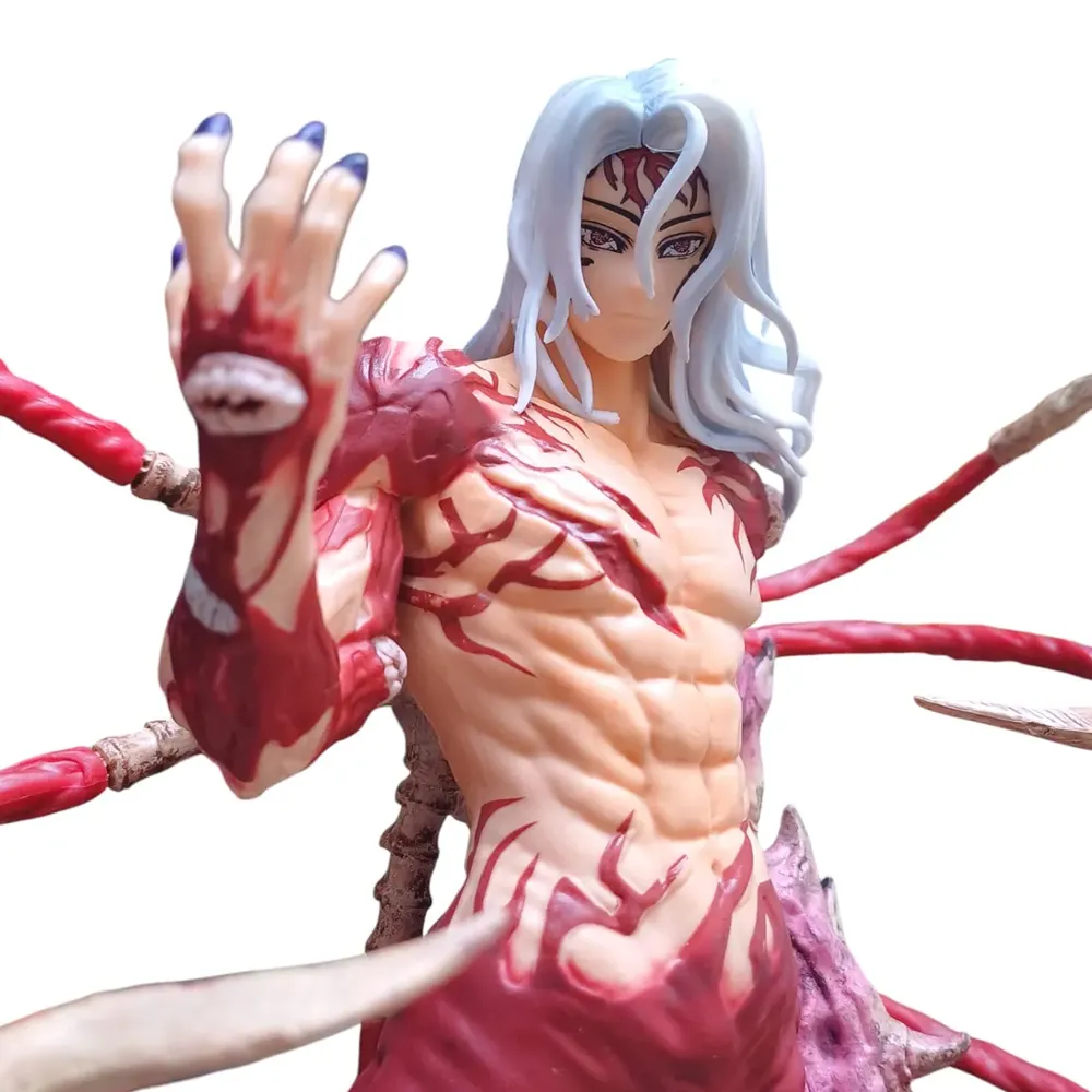 Presencia el terror absoluto con esta imponente figura de Muzan Kibutsuji de 30cm en su forma final. Esta pieza de colección destaca por la textura orgánica y detallada de sus látigos de carne y las múltiples bocas que cubren su cuerpo, capturando la desesperación del Rey de los Demonios en su batalla definitiva por la supervivencia.